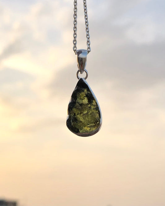 925 Sterling Silver Authentic Pear Shape Rough Moldavite Gemstone Pendant