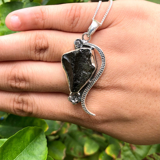 925 Sterling Silver Authentic Moldavite Gemstone Pendant Gift For Her