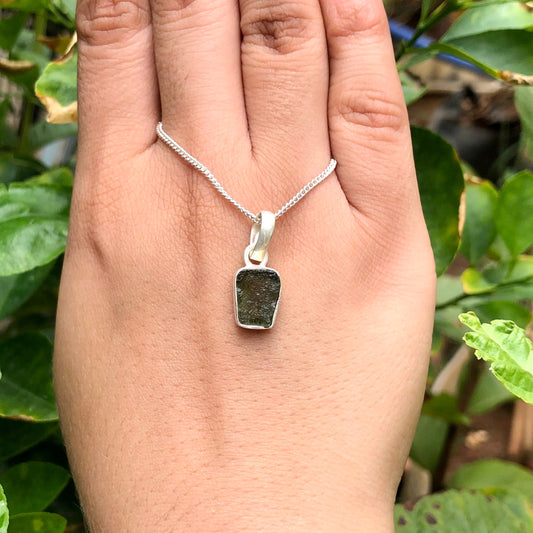 Sterling Silver Authentic Moldavite Gemstone Minimalist Pendant Jewelry Gift For Her