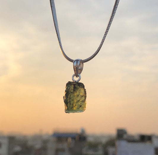 Authenitc Raw Rough Moldavite 925 Sterling Silver Pendant