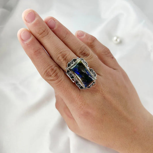 925 Sterling Silver Lapis Lazuli Gemstone Statement Ring Gift For Her